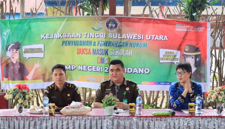MANADO_Kejaksaan Tinggi Sulawesi Utara melalui Seksi Penerangan Hukum dan Humas, melaksanakan Penyuluhan dan Penerangan Hukum Jaksa Masuk Sekolah (JMS) di SMP Negeri 2 Tondano, Selasa (17/10/23).