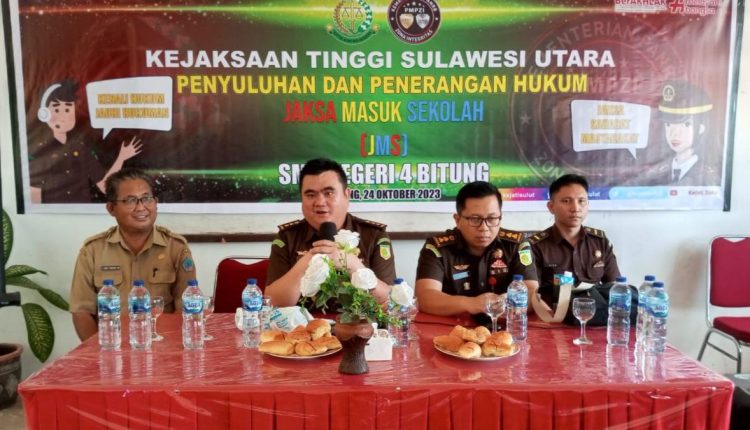 MANADO_Kejaksaan Tinggi Sulawesi Utara melalui Seksi Penerangan Hukum dan Humas, melaksanakan Penyuluhan dan Penerangan Hukum Jaksa Masuk Sekolah (JMS) di SMK Negeri 4 Bitung Kelurahan Batuputih Bawah, Kecamatan Ranowulu, Kota Bitung, Selasa ,(24/10/23).