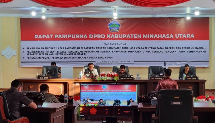 MINUT_Dewan Perwakilan Rakyat Daerah (DPRD) Kabupaten Minahasa Utara menggelar rapat paripurna pembicaraan tingkat II atas dua Ranperda dan penetapan PROPEMPERDA, Kamis (09/11/23).
