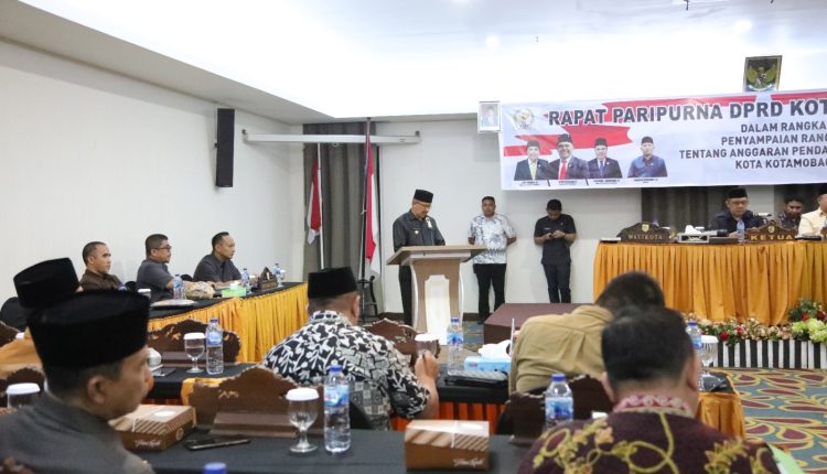 KOTAMOBAGU – Penjabt (Pj) Wali Kota, Dr. Drs. Hi. Asripan Nani, M.Si, Hadiri Rapat Paripurna DPRD Kota Kotamobagu dalam rangka pembicaraan tingkat 1 penyampaian Ranperda APBD Kota Kotamobagu Tahun Anggaran 2024.Senin 27 November 2023, Sutanraja Hotel – Kotamobagu.