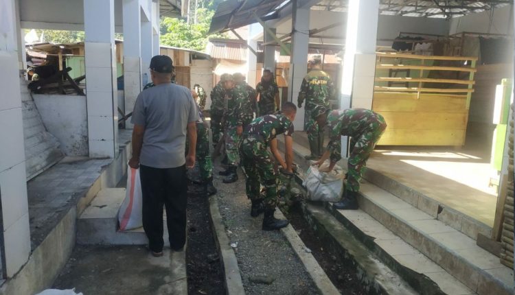 Koramil Bolaang Gelar Karya Bakti di Pasar Tradisional Inobonto