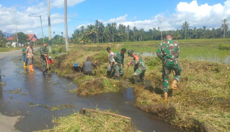 KOTAMOBAGU – Guna mencegah terjadinya banjir, Koramil 1303-01/Kotamobagu bersama warga melaksanakan pembersihan saluran drainase dalam giat Karya Bakti yang bertempat di Desa Kobo Kecil Kota Kotamobagu, Senin (18/12/2023).