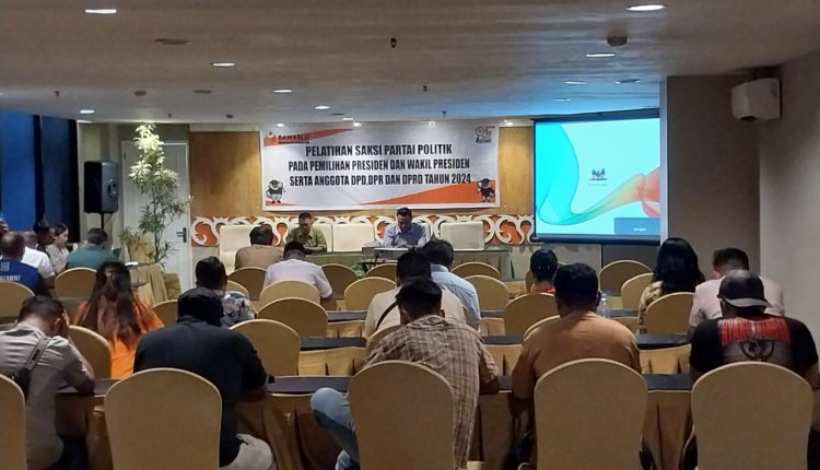 MINUT_Badan pengawas pemilihan umum (Bawaslu) Kabupaten Minahasa Utara melaksanakan pelatihan saksi partai politik pada Pemilu 2024, di Hotel Sutan Raja Maumbi, Sabtu (23/12/23).