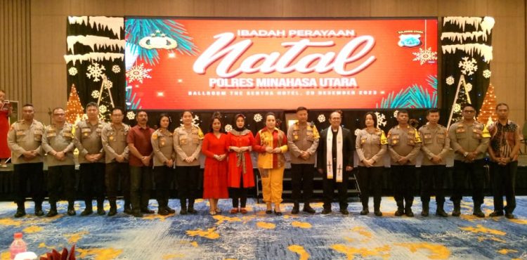 MINUT_Polres Minahasa Utara melaksanakan ibadah perayaan Natal Yesus Kristus, di The Sentra hotel Manado, Minahasa Utara, Jumat (29/12/23).