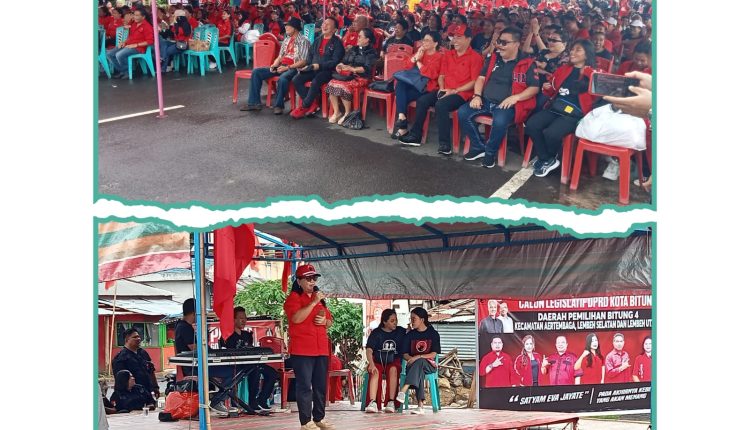 BITUNG — Partai Demokrasi Indonesia Perjuangan (PDIP) Kota Bitung menggelar kampanye terbatas di pulau Lembeh, Sabtu (6/1/2024).