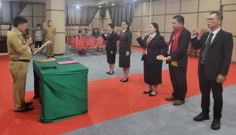 Pelantikan dan pengambilan sumpah janji jabatan dilaksanakan di Aula Kantor Bupati Minut, Selasa (16/01/24).