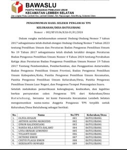 Berikut 34 nama Pengawas TPS Kecamatan Lembeh Selatan.