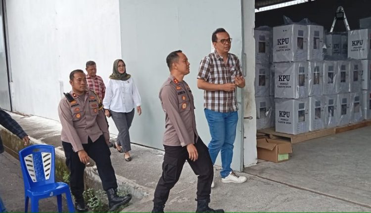 BITUNG — Hari pertama bertugas di Polres Bitung AKBP Albert Zai, SIK, MH langsung meninjau gudang logistik Komisi Pemilihan Umum (KPU) Kota Bitung, Kamis (1/2/2024).