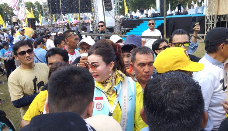 SULUT – Christiany Eugenia “Tetty” Paruntu atau akrab di sapa (CEP), Mengapresiasi kedatangan Calon presiden nomor urut 02 yakni Prabowo Subianto di Lapangan koni, sario . Senin (05/02/2024).