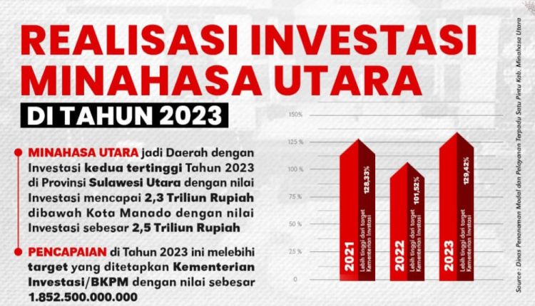 Bupati Joune Ganda mengatakan, realisasi investasi di wilayah Kabupaten Minahasa Utara sepanjang Januari hingga Desember 2023 mencapai 2,3 Triliun Rupiah.