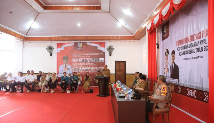 KOTAMOBAGU – Penjabat (Pj) Wali Kota Kotamobagu, Dr. Drs. Hi. Asripan Nani., M.Si., Membuka Secara Resmi Forum Konsultasi Publik dalam rangka Penyusunan rancangan Awal Rencana Kerja Pemerintah Daerah Kota Kotamobagu Tahun 2025.Senin 4 Maret 2024, Aula Rumah Dinas Wali Kota Kotamobagu.
