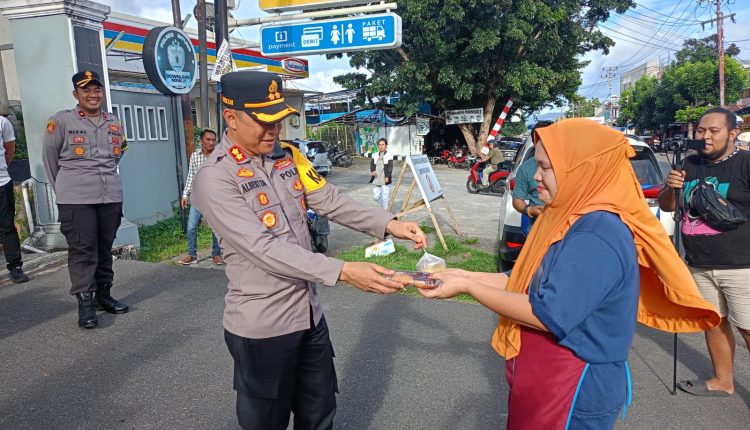 Kapolres Bitung Bagi Takjil Sekaligus Sosialisasi Taat Berlalulintas