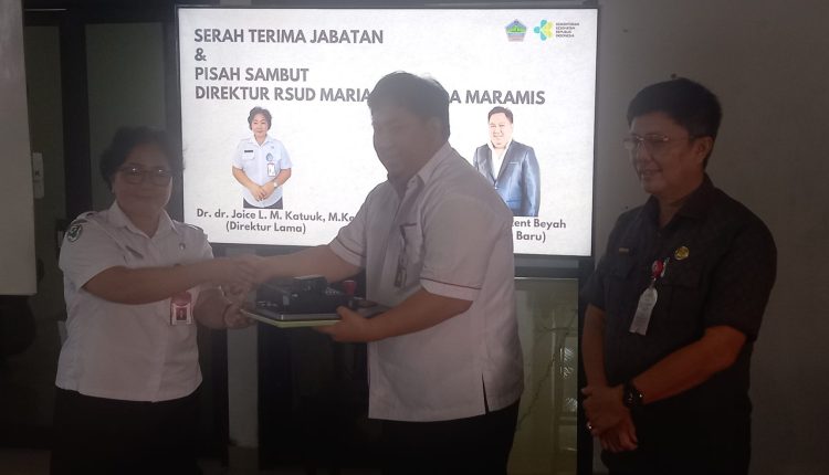 MINUT_ Rumah Sakit Umum Daerah (RSUD) Maria Walanda Maramis (MWM) menggelar sertijab dan pisah sambut dari Direktur Dr.dr. Joice L. M. Katuuk, M.Kes kepada dr. Alain Vincent Beyah selaku Direktur yang baru, Rabu (27/03/24).