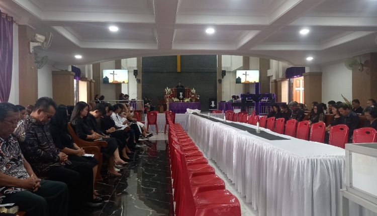 Ibadah Jumat Agung dan perjamuan kudus untuk menghayati pengorbanan Yesus Kristus di atas kayu salib demi menebus dosa semua umat-Nya dipimpin oleh Ketua BPMJ GMIM Getsemani Perum Rizky Kolongan Tetempangan Pdt. Berty Tamon, STh, MPd.