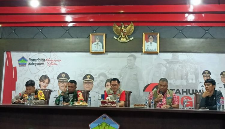 MINUT_Pemeritah Kabupaten Minahasa Utara menggelar Rapat Koordinasi dan Evaluasi (Rakorev ) penanganan bencana yang terjadi di beberapa wilayah Kecamatan Likupang Raya, di Aula lantai tiga Kantor Bupati, Sabtu (13/04/24).