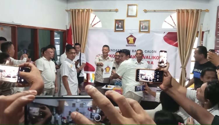 Dokumen pendaftaran Ketua DPC Partai Gerindra Kota Bitung, Randito Maringka diterima langsung tim penjaringan Bakal Calon Wali Kota dan Bakal Calon Wakil Wali Kota Partai Gerindra Kota Bitung.