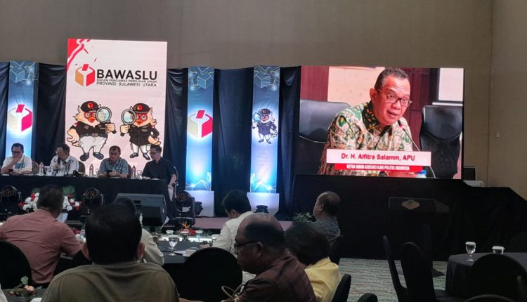 Ketua Umum AIPI Alfitra Salamm secara khusus menyampaikan ini kepada ketua Bawaslu Sulut Ardiles Mewoh saat menjadi pembicara dalam Rapat evaluasi fasilitas pembinaan dan penguatan kelembagaan Bawasly Sulur dalam rangka pengawasan tahapan Pemilu 2024,Sabtu (8/06/2024).