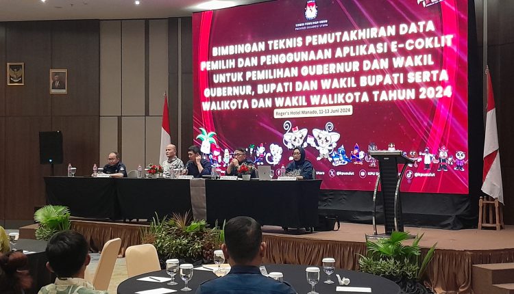 SULUT – Melakukan pemetaan persoalan dalam pelaksanaan Pencocokan dan Penelitian (Coklit) pemutakhiran data pemilih (Pantarlih) di Pemilihan Kepala Daerah (Pilkada) Provinsi dan Kabupaten/Kota, KPU Sulut mengumpulkan seluruh Komisioner KPU Kabupaten/Kota gelar Bimbingan Tekhnis.