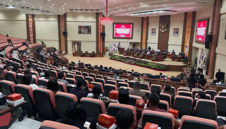 SULUT – DPRD Provinsi Sulawesi Utara (Sulut) menggelar rapat paripurna dalam rangka Penyampaian/Penjelasan Gubernur Terhadap Ranperda tentang Pertanggungjawaban Pelaksanaan APBD Provinsi Sulut tahun anggaran 2023, sekaligus pemandangan umum fraksi terhadap ranperda tersebut serta tanggapan dan/atau jawaban gubernur terhadap pemandangan umum fraksi.