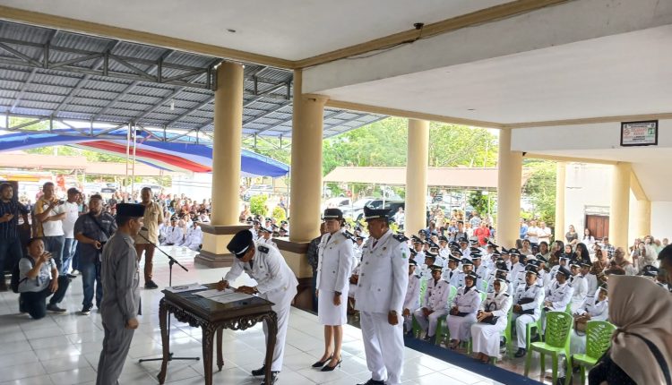 Suasana pengukuhkan Perpanjangan Masa Jabatan 193 Sangadi di Kantor Bupati, Kamis (4/7/2024).