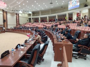SULUT – DPRD Provinsi Sulut melaksanakan Paripurna dalam rangka penyampaian dalam penjelasan kebijakan umum anggaran (KUA) dan prioritas plafon anggaran (PPAS) sementara APBD (Anggaran pendapatan dan belanja daerah) Provinsi Sulut tahun 2025, Ruang Paripurna DPRD Provinsi Sulut, Senin (22/07/2024).