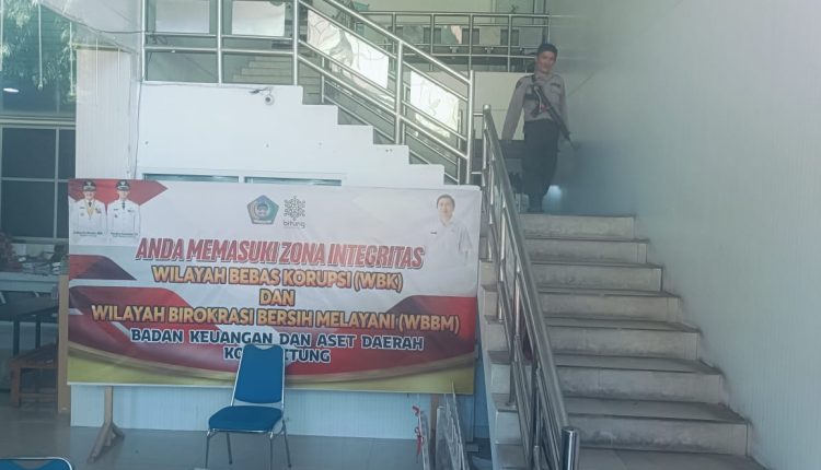 Penggeledahan di Kantor BKAD, tim Kejaksaan Negeri Bitung di jaga 2 anggota bersenjata lengkap dari Polres Bitung.