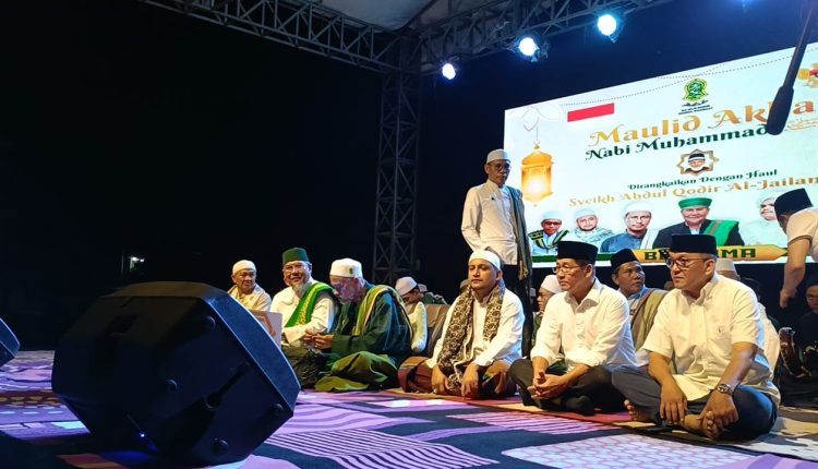 BITUNG — Hengky Honandar hadiri peringatan Maulid akbar Nabi Muhammad SAW 1446 H sekaligus rangkaian Haul Syaikh Abdul Qadir Al-Jailani yang digelar di lapangan Pasar Cita, Selasa (5/11/2024) malam.
