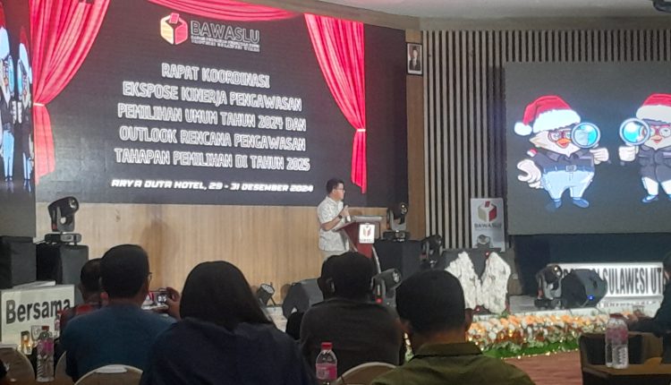 Ini disampaikan Komisioner Bawaslu Sulut Steven Linu dalam sambutannya membuka rapat koordinasi (Rakor) Ekspose Kinerja Pengawasan Pemilu Tahun 2024 dan outlook rencana pengawasan tahapan pemilihan ditahun 2025,Minggu (29/12/2024) di salah satu ruangan Hotel.