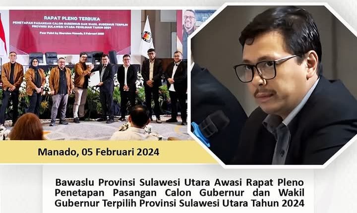 SULUT – Bawaslu Provinsi Sulut awasi Rapat Pleno Terbuka Penetapan Pasangan Calon Gubernur dan Wakil Gubernur Terpilih Provinsi Sulawesi Utara Pemilihan Tahun 2024, yang dilaksanakan oleh KPU Sulawesi Utara, pada Rabu (5/2/2025) sore, bertempat disalah satu Hotel di Manado.