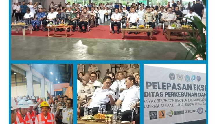 Bertempat di Pelabuhan Peti Kemas Bitung, Rabu 23 April 2025, dilakukan pelepasan ekspor komoditas unggulan sektor perkebunan dan perikanan ke sembilan negara tujuan dengan total volume 213,75 ton dan nilai ekonomi mencapai Rp13,361 miliar.