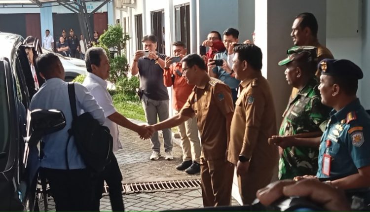 BITUNG—Wali Kota Bitung Hengky Honandar SE dan Wakil Wali Kota Randito Maringka SE menyambut kedatangan Menteri Kelautan dan Perikanan (KKP) RI, Sakti Wahyu Trenggono di Pelabuhan Perikanan Samudera (PPS) Bitung, Senin (28/4/2025).