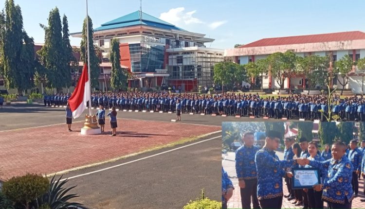 Turut hadir dalam upacara ini para pejabat struktural, ASN, serta pegawai non-ASN.
