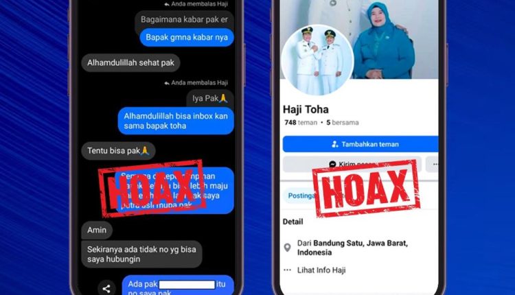SEKAYU, MUBA – Masyarakat diimbau lebih waspada terhadap maraknya penipuan digital. Baru-baru ini beredar akun Facebook mencurigakan dengan nama “Haji Toha” yang menggunakan foto resmi Bupati Musi Banyuasin H. M. Toha, Wakil Bupati Rohman, serta Ketua TP PKK Hj. Patimah Toha. Setelah ditelusuri, akun tersebut dipastikan palsu alias hoaks.