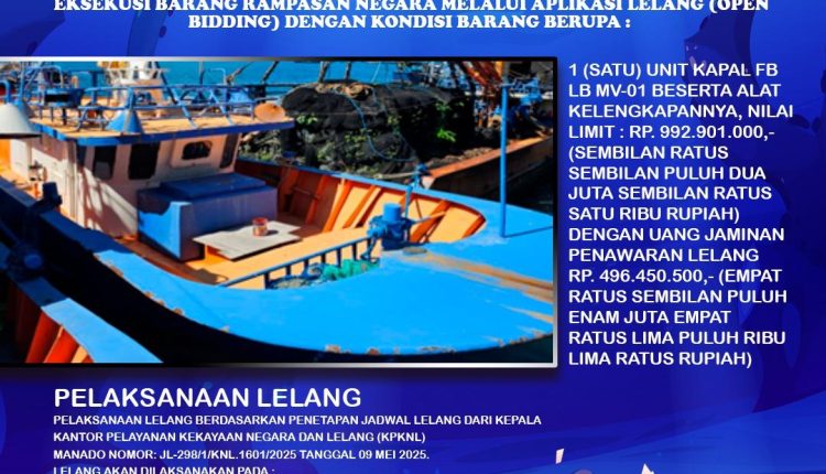 BITUNG—Kejaksaan Negeri (Kejari) Bitung melalui Kantor Pelayanan Kekayaan Negara dan Lelang (KPKNL) Manado secara resmi mengumumkan pelaksanaan lelang atas tiga unit kapal ikan.