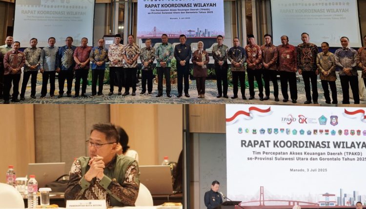 MANADO—Wali Kota Bitung, Hengky Honandar, S.E., menghadiri Rapat Koordinasi Wilayah Tim Percepatan Akses Keuangan Daerah (TPAKD) se-Provinsi Sulawesi Utara dan Gorontalo Tahun 2025 yang digelar di Luwansa Hotel, Manado, Kamis (3/7/2025).