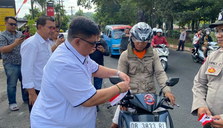 Terima Kasih Pak Polisi, Personil Polda Sulut Berbagi Ribuan Bendera Merah Putih Untuk Kendaraan Roda 2 Dan 4