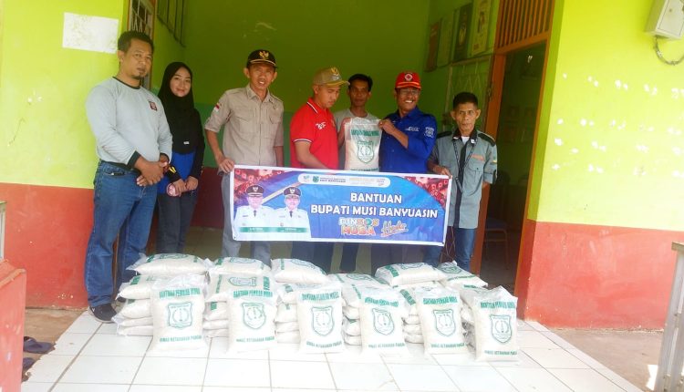 JIRAK JAYA, — Pemerintah Kabupaten Musi Banyuasin (Pemkab Muba) menyalurkan bantuan pangan bagi warga yang terdampak angin puting beliung di Desa Mekar Jaya, Kecamatan Jirak Jaya, Sabtu (23/8/2025).