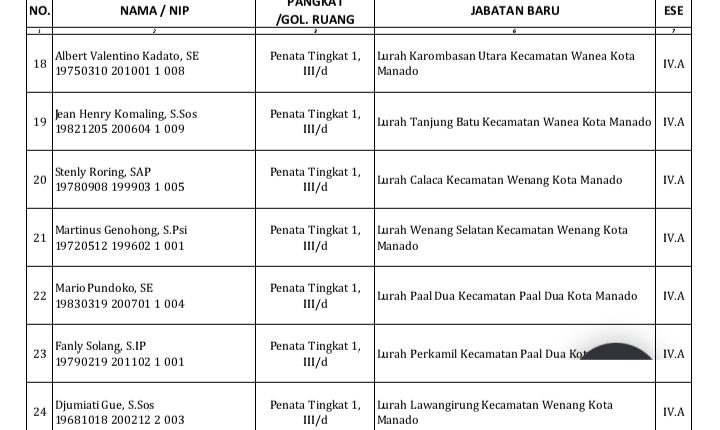 Richard Sualang Lantik 40 Pejabat Baru, Ini Daftarnya Manado By Noberd Losa On Agu 28, 2025 0 Share MANADO – Pemerintah Kota (Pemkot) Manado gelar roling melantik pejabat baru. Pelantikan tersebut dilakukan oleh Wakil Walikota Manado Richard Sualang dengan melantik 40 pejabat baru di Aula Serba Guna Pemkot Manado, Kamis (28/8/25). 0 Share