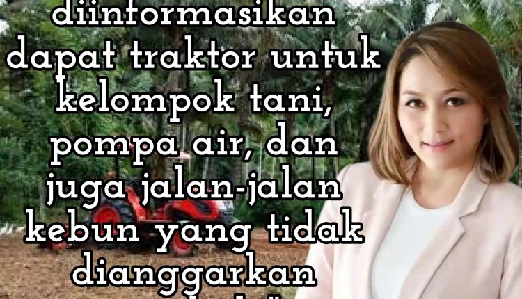 Lobi Michaela Paruntu untuk kelompok tani (Poktan) yang disetujui Kementan adalah bantuan traktor,Pompa air serta akses jalan perkebunan atau jalan usaha tani (JUT).