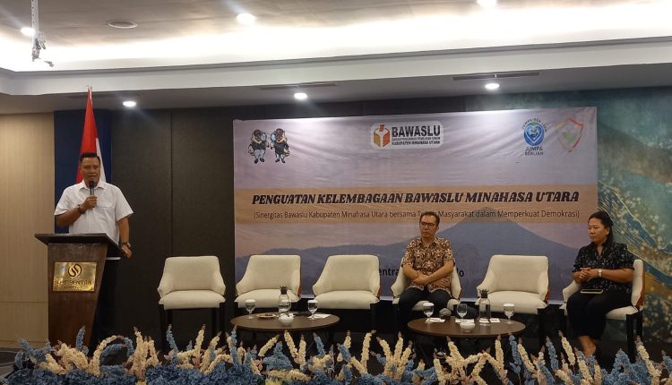 MINUT,Indo-news.id_Bawaslu Kabupaten Minahasa Utara menggelar kegiatan penguatan kelembagaan bertema “Sinergitas Bawaslu Minut Bersama Masyarakat dalam Memperkuat Demokrasi” di The Sentra Hotel, Kamis (16/10/25).
