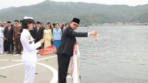 Wali Kota Bitung, Hengky Honandar SE melakukan tabur bunga dari atas kapal KRI Kakap 811.