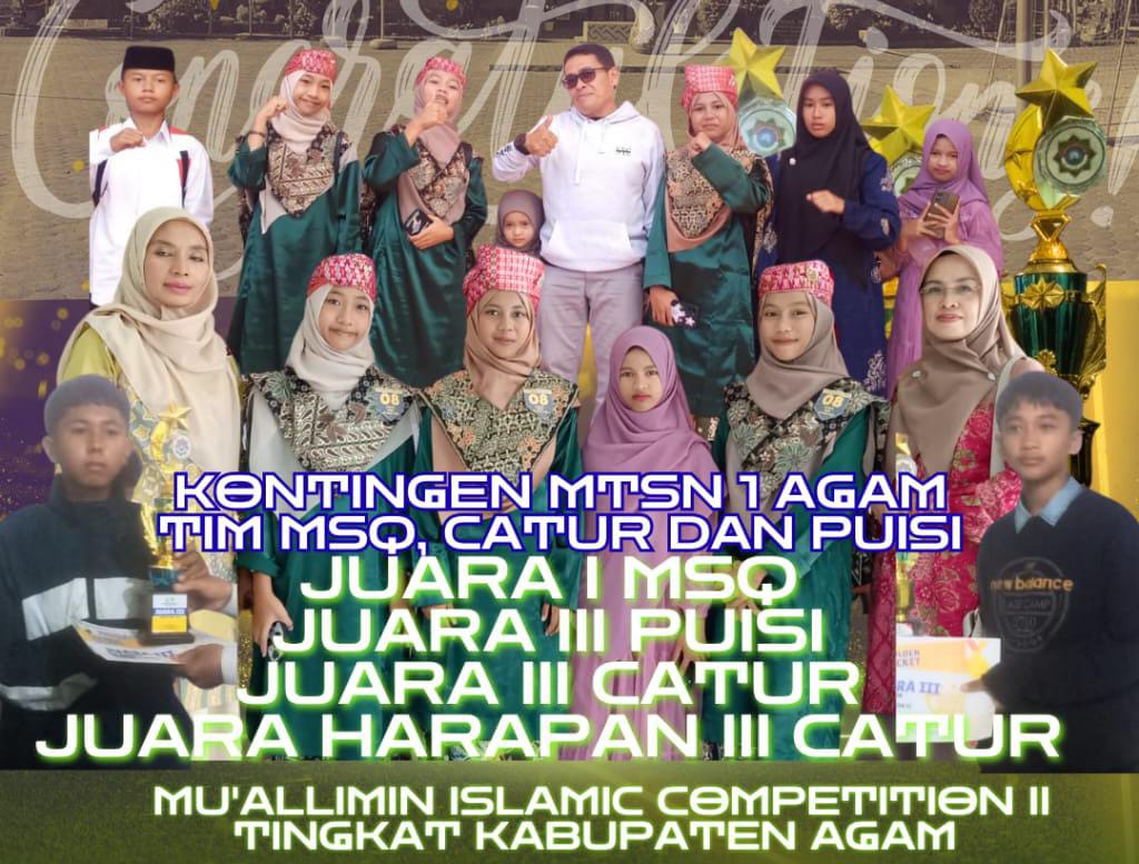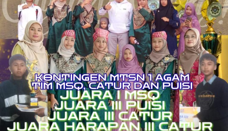 Perjuangan kontingen MTsN 1 Agam membuahkan hasil manis dengan beberapa pencapaian membanggakan: