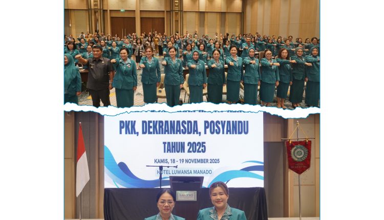 MANADO, Indo-news.id—Ketua TP PKK Kota Bitung, Ny Ellen Honandar Sondakh SE, bersama Sekretaris TP PKK, Ny Jacinta Marybell Maringka Gumolung, menghadiri pembukaan Rapat Kerja PKK, Dekranasda, dan Posyandu yang digelar di Hotel Luwansa Manado, Selasa (18/11/2025).