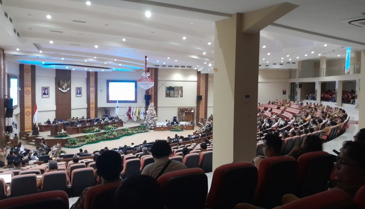 SULUT – Rapat paripurna DPRD Sulut dalan rangka penyampaian/penjelasan Gubernur terhadap Rancangan peraturan daerah (Ranperda) Provinsi Sulut tentang APBD tahun anggaran 2026, Renperda tentang perubahan atas perda nomor I tahun 2024 tentang pajak daerah dan retribusi daerah sekaligus dan perubahan nama BUMD PT. Membangun Sulut Hebat (MSH) menjadi PT. Membangun Sulut Maju (MSM) serta pemandangan umum fraksi terhadap tiga Ranperda, Senin (24/11/2025).