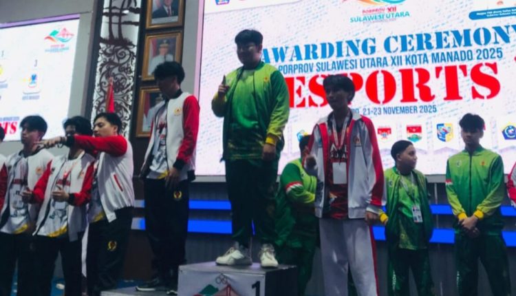 KOTAMOBAGU — Prestasi membanggakan kembali ditorehkan Kontingen Kota Kotamobagu pada ajang Pekan Olahraga Provinsi (Porprov) XII Sulawesi Utara 2025. Tim Esport Kotamobagu berhasil mengunci medali emas pada nomor Mobile Legend (ML) beregu putra setelah tampil dominan di Aula Kantor Wali Kota Manado, Senin (24/11/2025) dini hari.