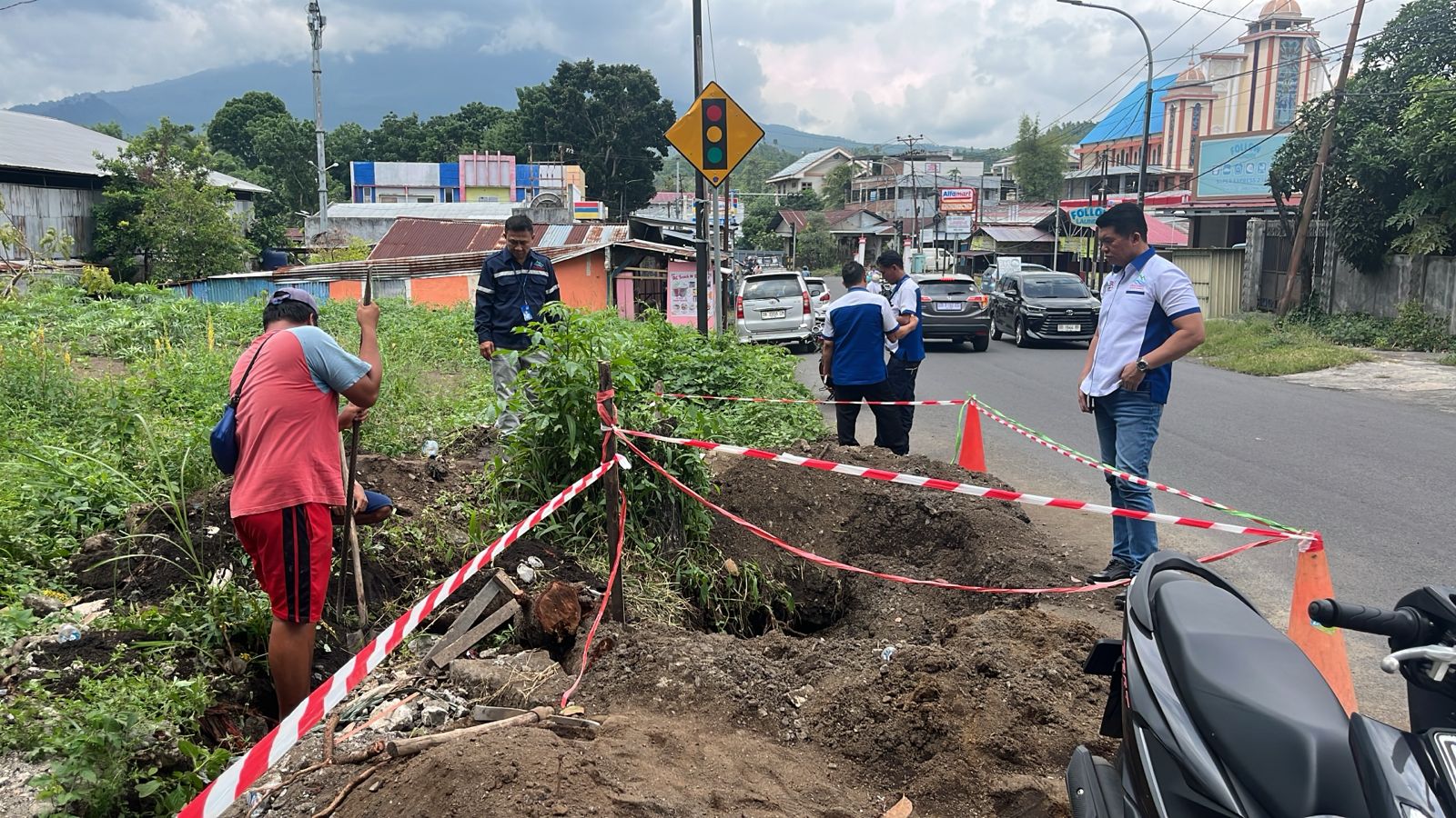 Direktur Perumda Air Minum Duasudara Kota Bitung, Alfred Salindeho, SE, MM, turut melakukan peninjauan langsung ke lokasi perbaikan pipa.