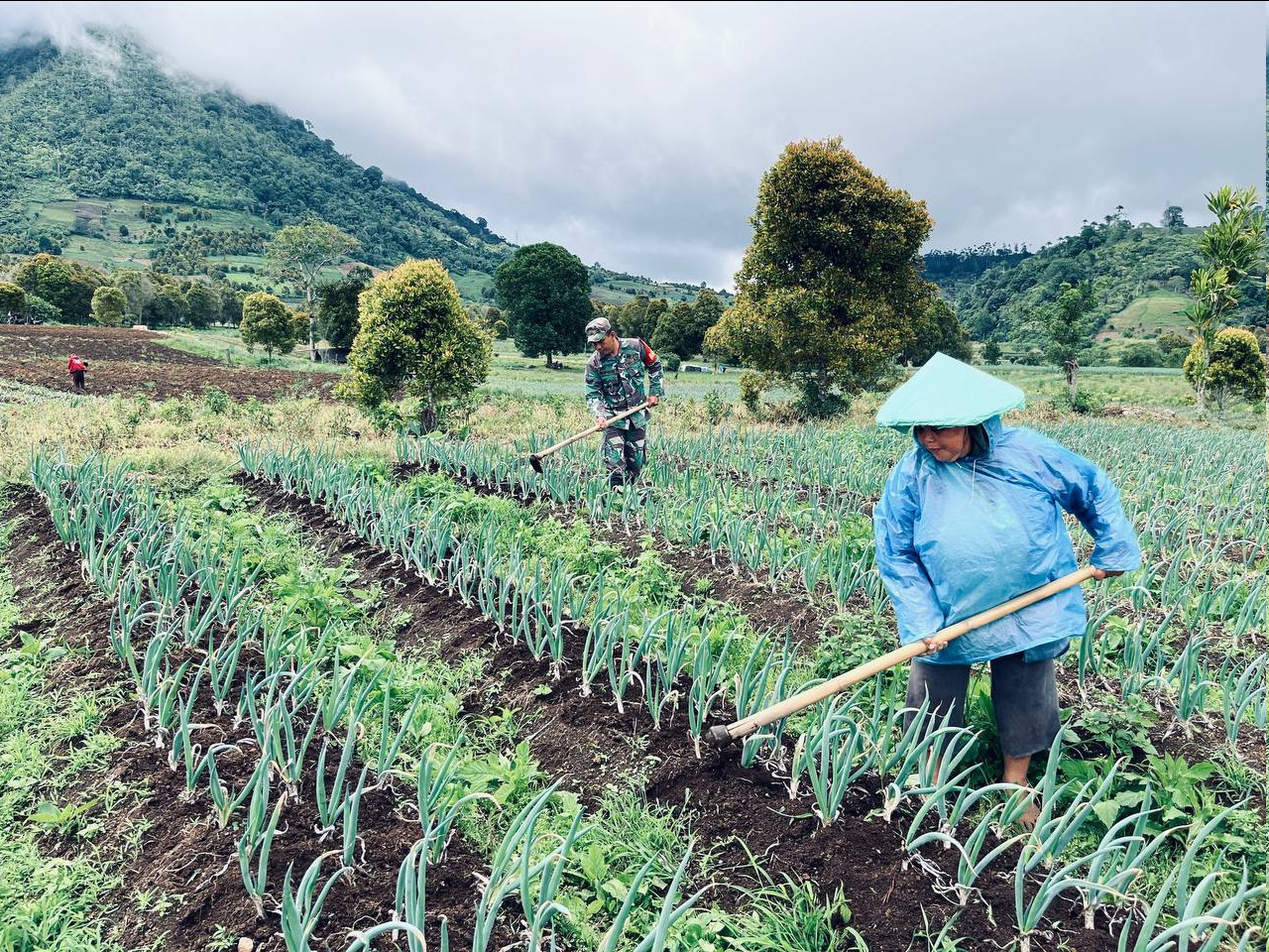 Sentuhan Humanis Babinsa, Bantu Petani Rawat Tanaman Bawang