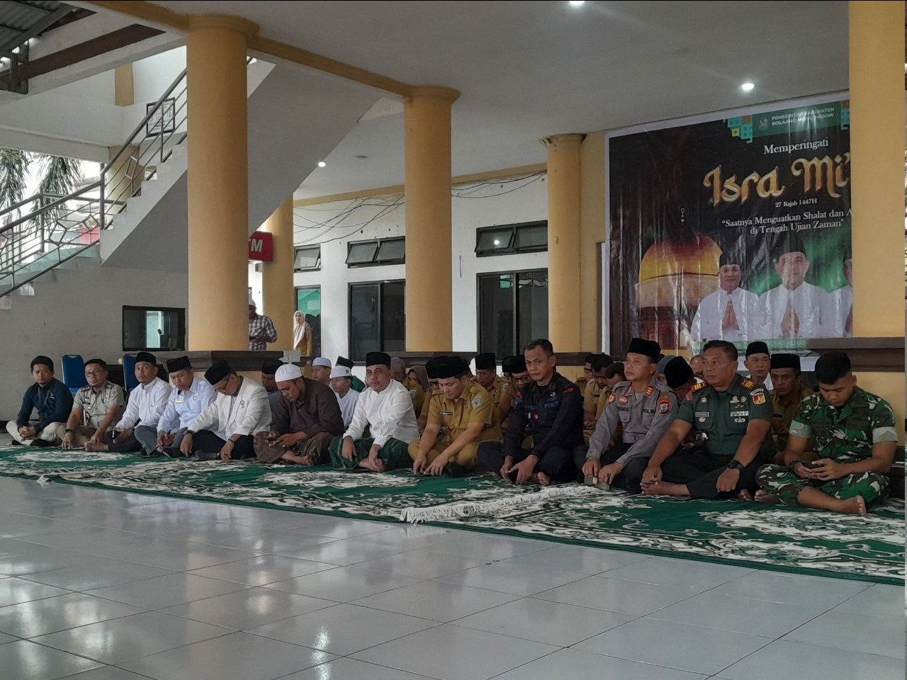 Peringatan Isra Mi’raj kali ini mengangkat tema “Saatnya Menguatkan Shalat dan Akhlak di Tengah Ujian Zaman”, yang diikuti oleh unsur Forkopimda, jajaran ASN, serta tamu undangan lainnya. Kodim 1303/Bolaang Mongondow turut hadir melalui Danramil 1303-11/Lolak Kapten Arm Petrus Bambang, DS, yang mewakili Dandim 1303/Bolmong.