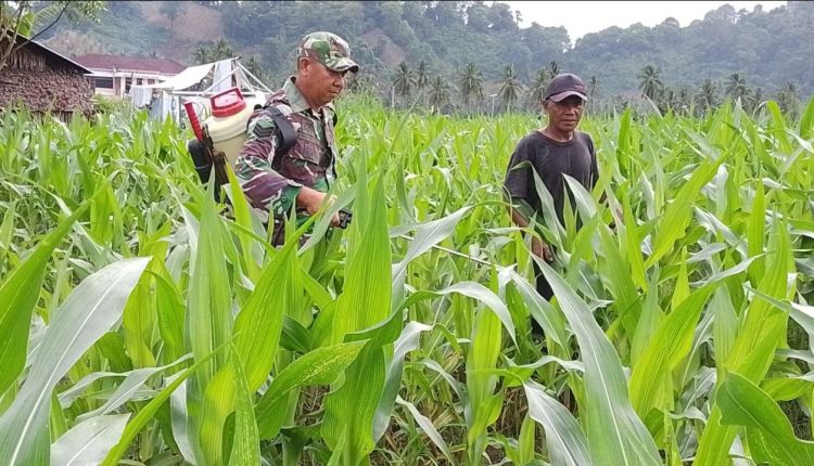 Jamin Kualitas Panen, Babinsa Koramil Lolak Dampingi Petani Pindol Basmi Hama Jagung