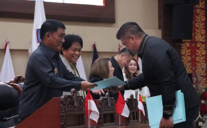 ‎Henry Walukow saat menyampaikan laporan Pansus DPRD Sulut Ranperda tentang Rencana Tata Ruang Wilayah RTRW Tahun 2025 – 2044, dalam rapat Paripurna Ranperda RTRW, Selasa (24/02/2026).